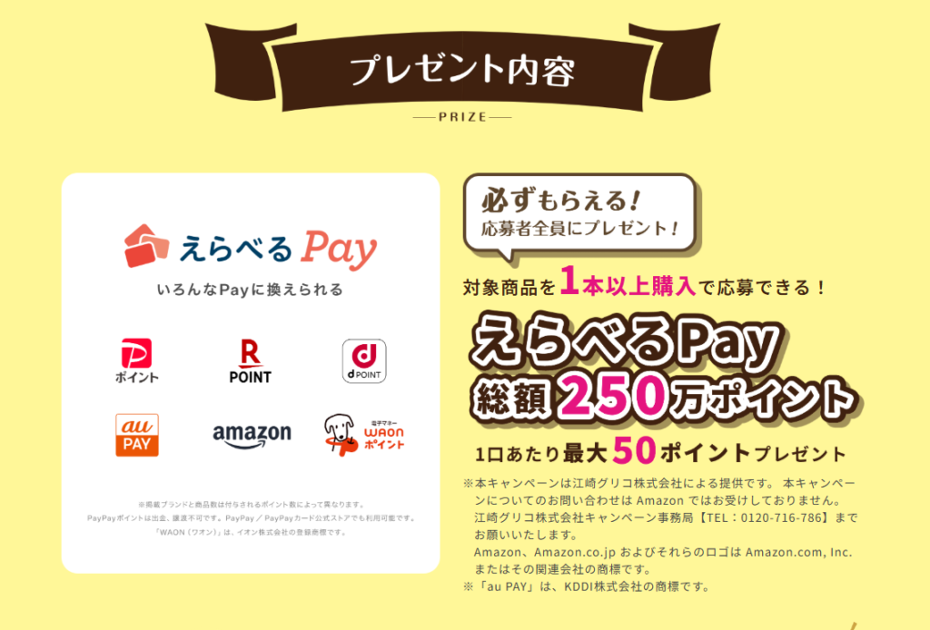 必ずもらえる 総額300万ポイントが当たる!えらべるPayキャンペーン|江崎グリコ