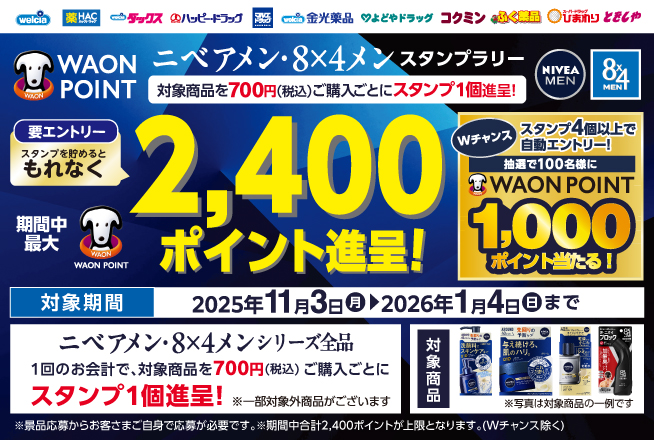 ▼対象商品1点お買い上げごとに2スタンプを進呈