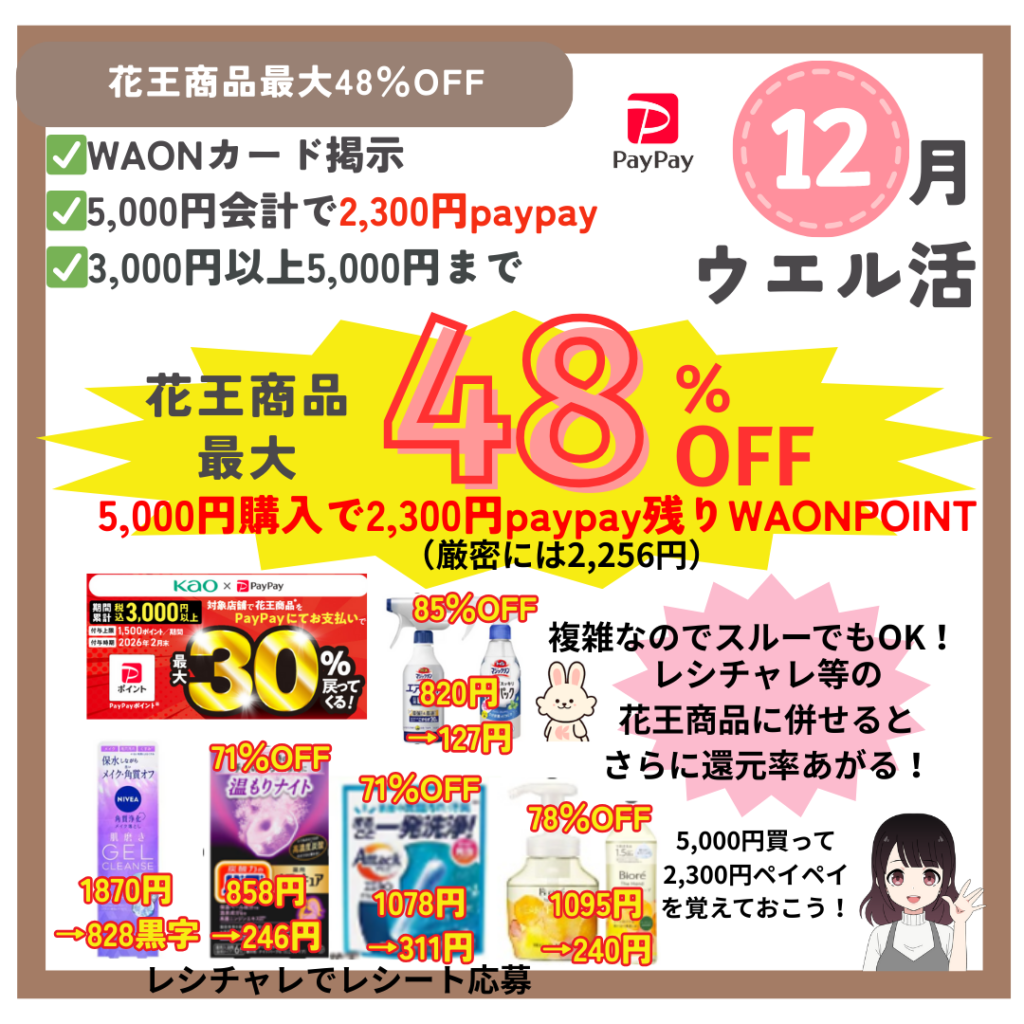 5,000円の花王商品を2,300円ペイペイで支払い、のこりWAONPOINTでOK