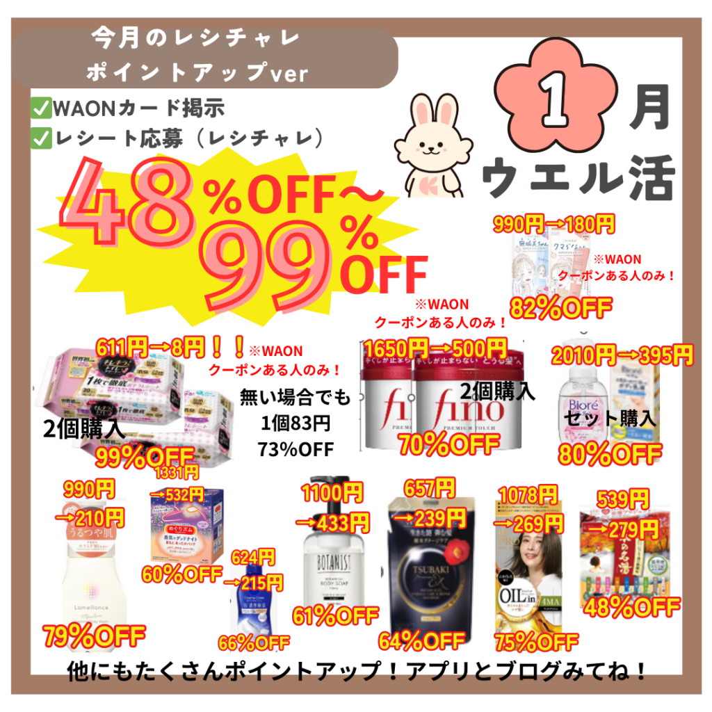 キレキラWAONクーポン来てる人は99%OFF🔥