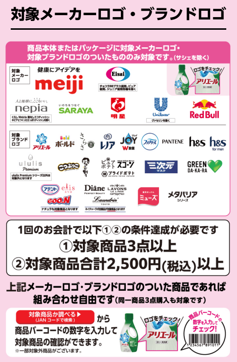 期間中1回のお会計で対象商品3点以上