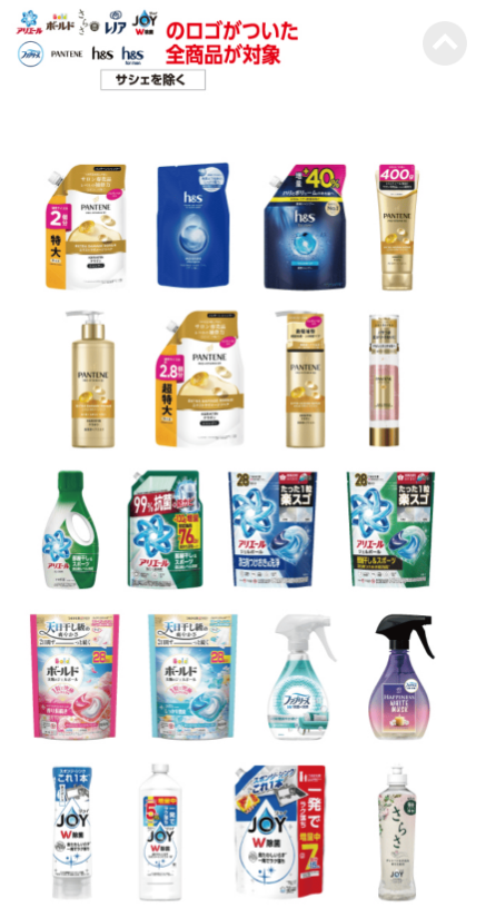アリエール、ボールド、さらさ、レノア、JOY、ファブリーズ、パンテーン、h&s