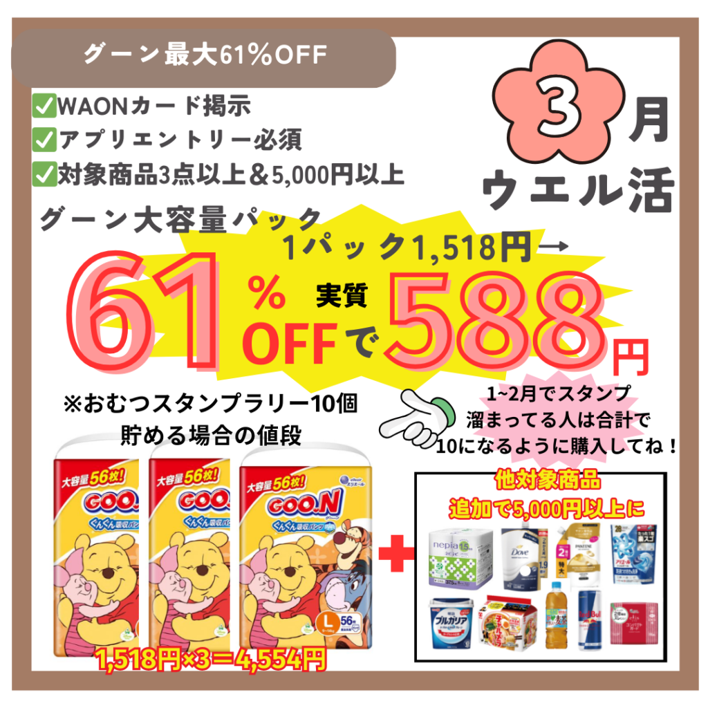 1~2月でおむつ購入してる人はスタンプ数確認!
